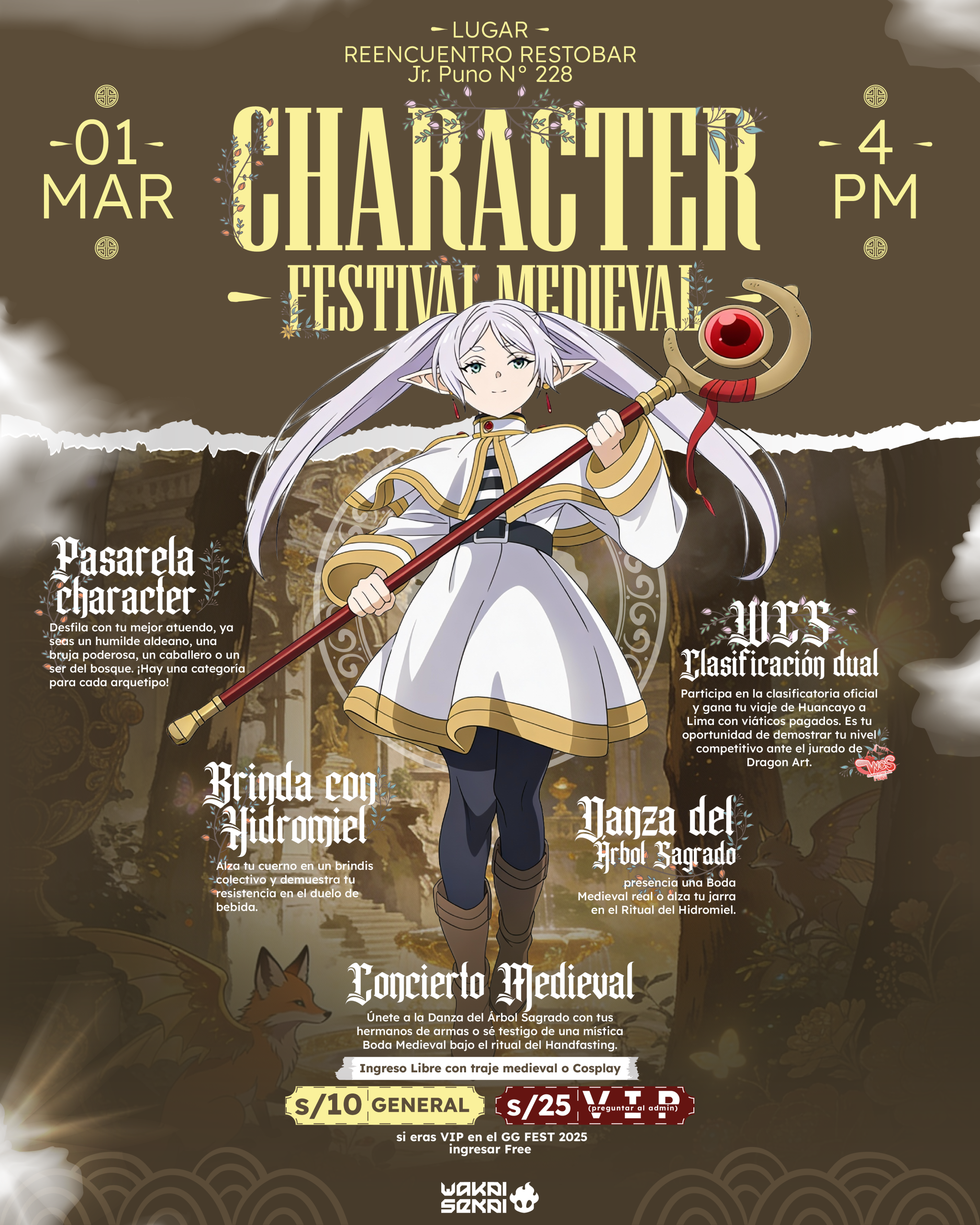 - 🆓 Ingreso gratuito: Para asistentes con traje medieval (siglos V al XV – Alta, Plena o Baja Edad Media) o cosplay de temática medieval/fantasía.